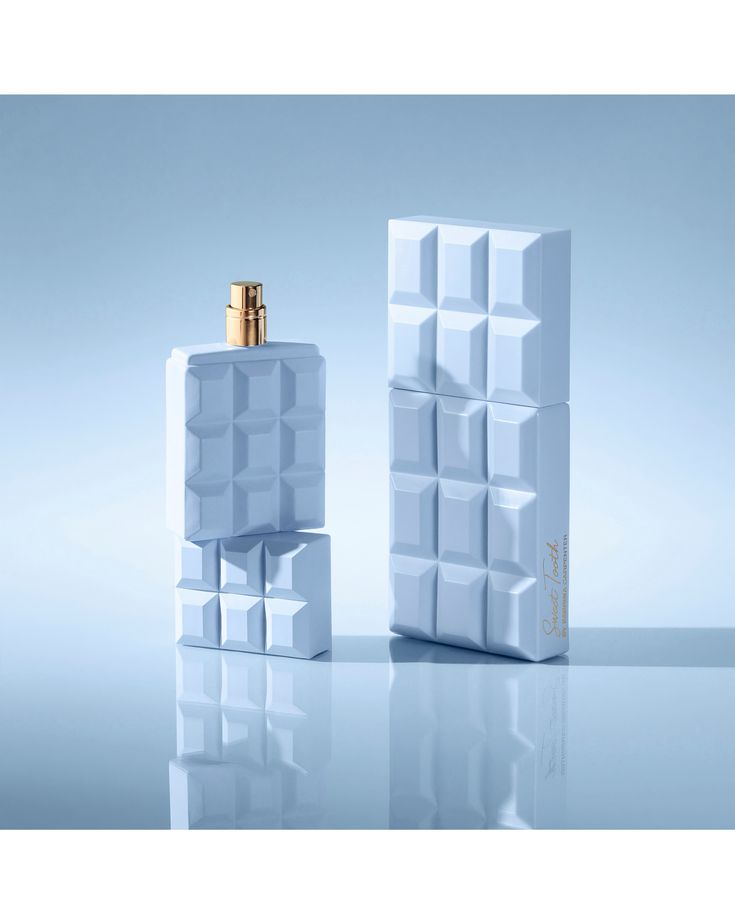 Sabrina described it herself as “my new obsession”, and fans are calling it the ultimate cozy-gourmand perfume. The iconic Sweet Tooth chocolate-bar bottle is back — this time in baby blue, perfectly matching the vibe of the song and scent. 🎵💙